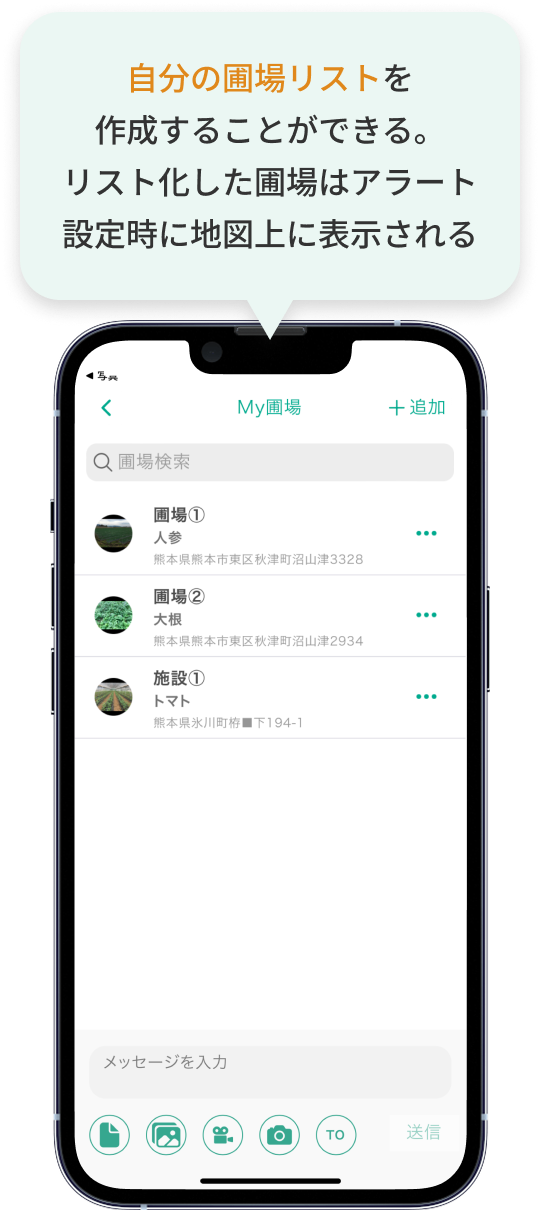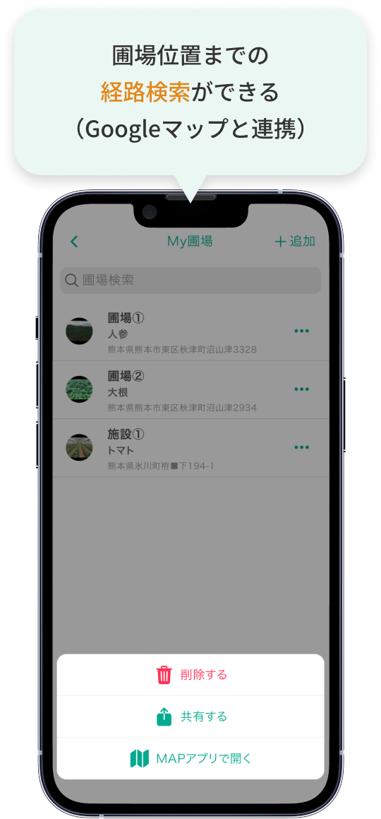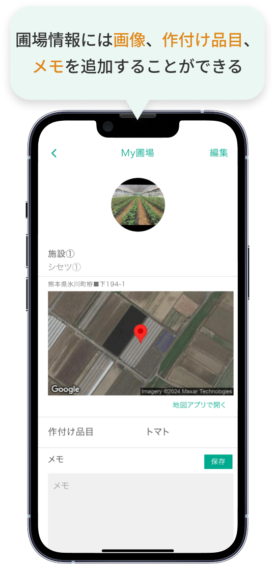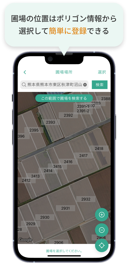 Googleマップ上に圃場の位置情報をラベリングできます。